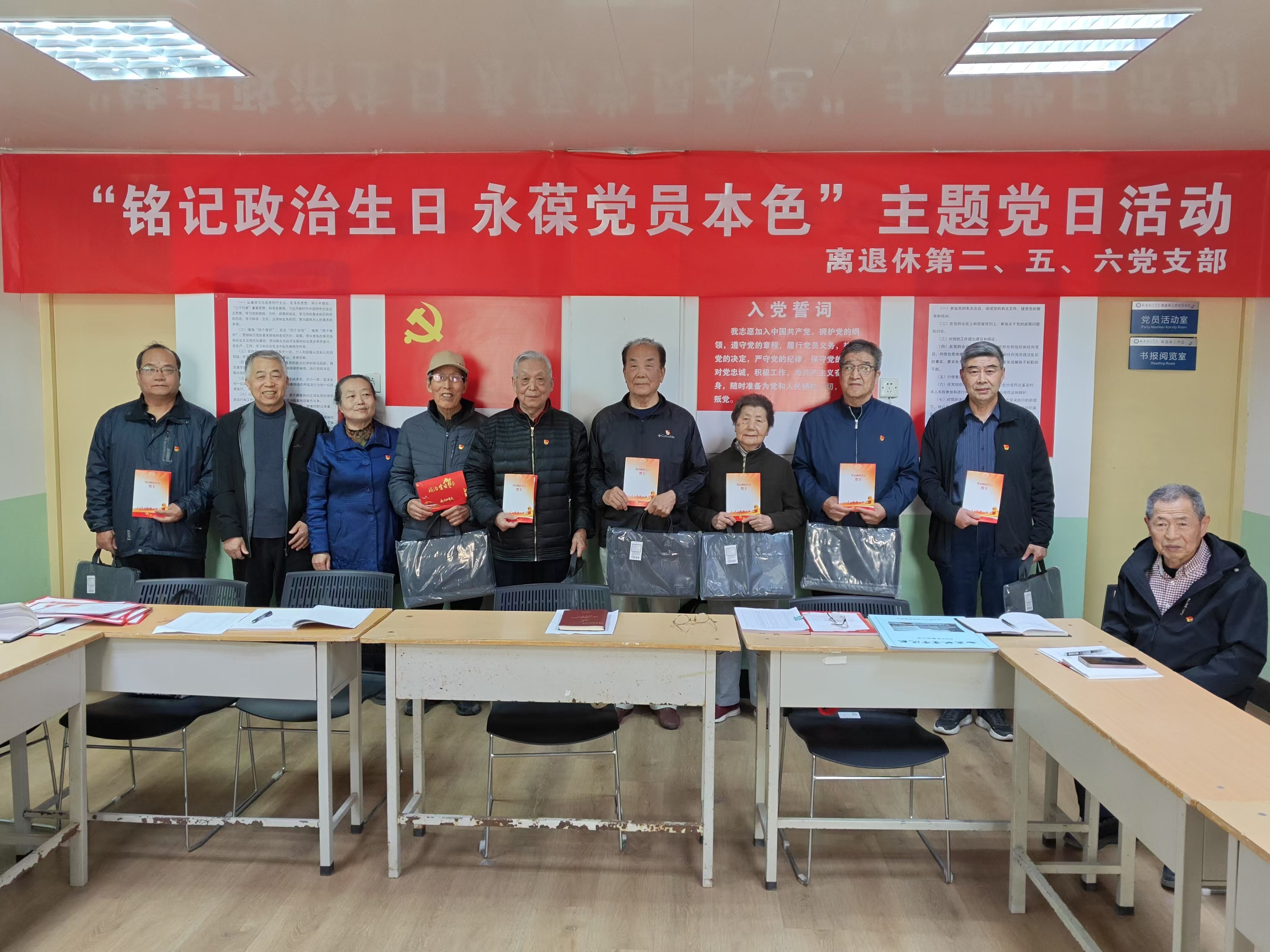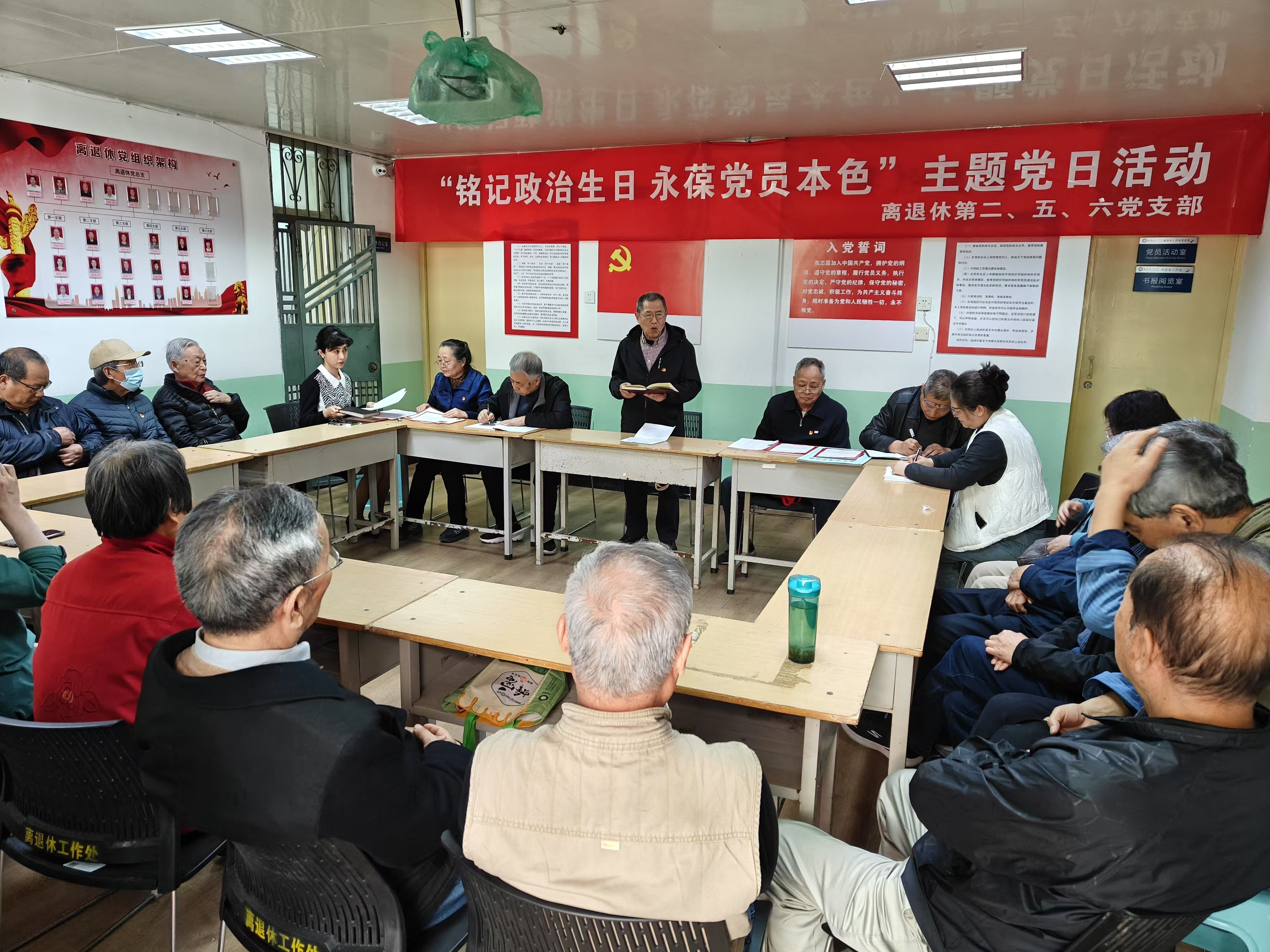 为深化党性教育,激发党员坚守初心、永葆先进性的政治自觉。3月27日,离退休第二、五、六党支部联合开展“铭记政治生日,永葆党员本色”主题党日活动。30余名党员参加活动,参会的年龄最大党员91岁。第二支部书记樊增哲主持活动。