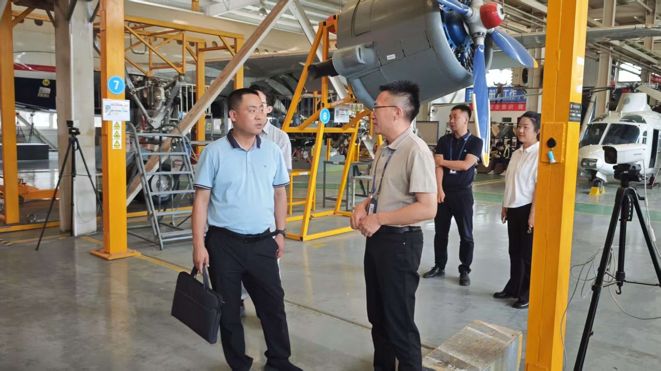 座谈会后,学院团队在企业负责人冉磊陪同下,实地参观了金宇航空的实训基地、机库和维修车间。
