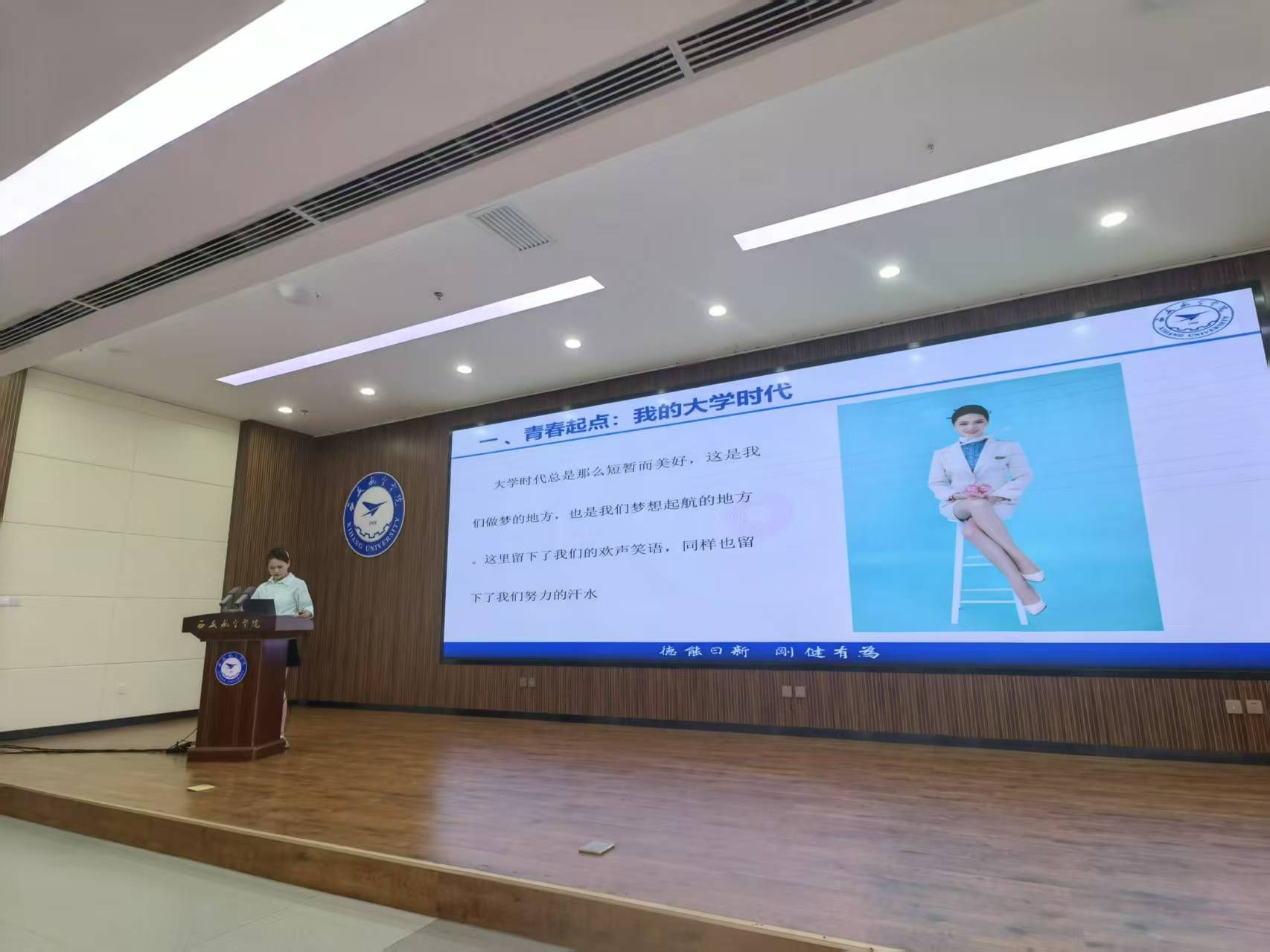 柏团辉在西部机场集团地勤岗位恪尽职守,践行责任担当;赵楚于海南航空乘务队展现专业服务风采;郝璇由地服、乘务成功转型职业教育,将经验反哺育人;于欣桐则在韩亚航空的国际舞台上绽放青春光芒。四位校友职业路径各异,结合各自工作经历,为学弟学妹们带来了一场生动的“成长课”。他们分享了自己在岗位上克服困难、提升技能、转型发展的真实故事,强调了专业素养、责任心、团队协作和终身学习的重要性。校友们扎根行业的专注、直面挑战的韧性以及献身民航事业的热爱,深深感染了现场师生,展现了西航学子扎实专业、锐意进取、热爱民航的特质。
