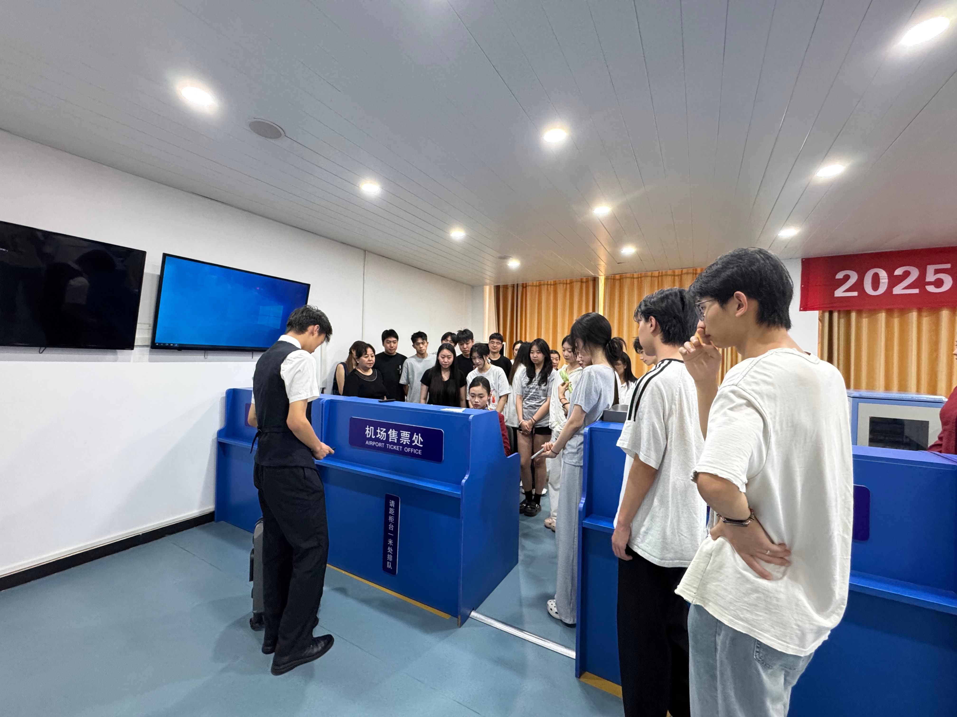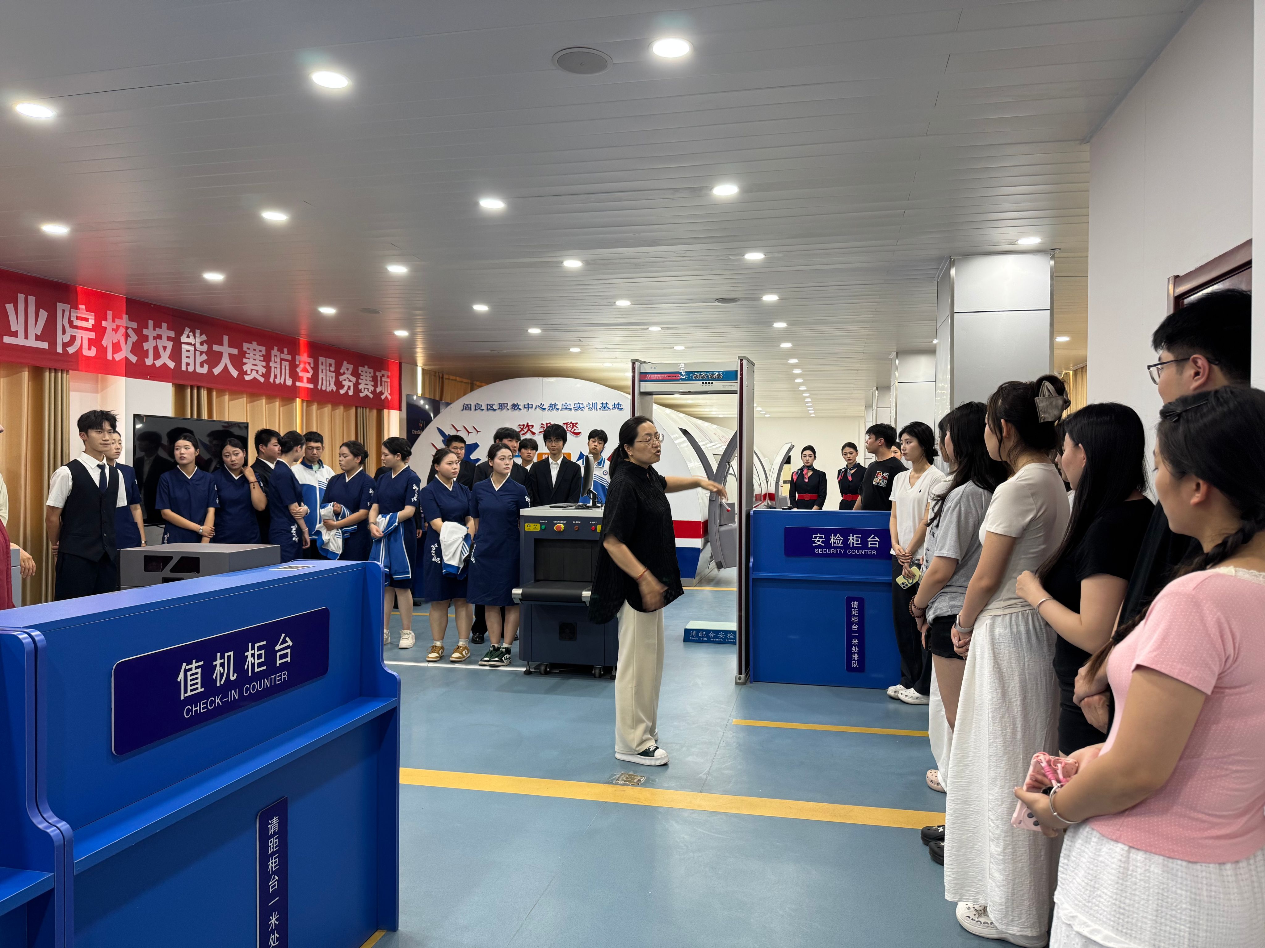 下午2点,在阎良职业中学航空模拟实训室,beat365英国官网网站2022级航服专业学生与职中学子率先开展了情境化技能交流。从规范的客舱服务流程演示,到紧急情况下的应急处置操作演练,学生们在仿真环境中相互学习、切磋技艺。此次模拟舱实操不仅强化了学生们的专业技能,更推动了产教融合向纵深发展。