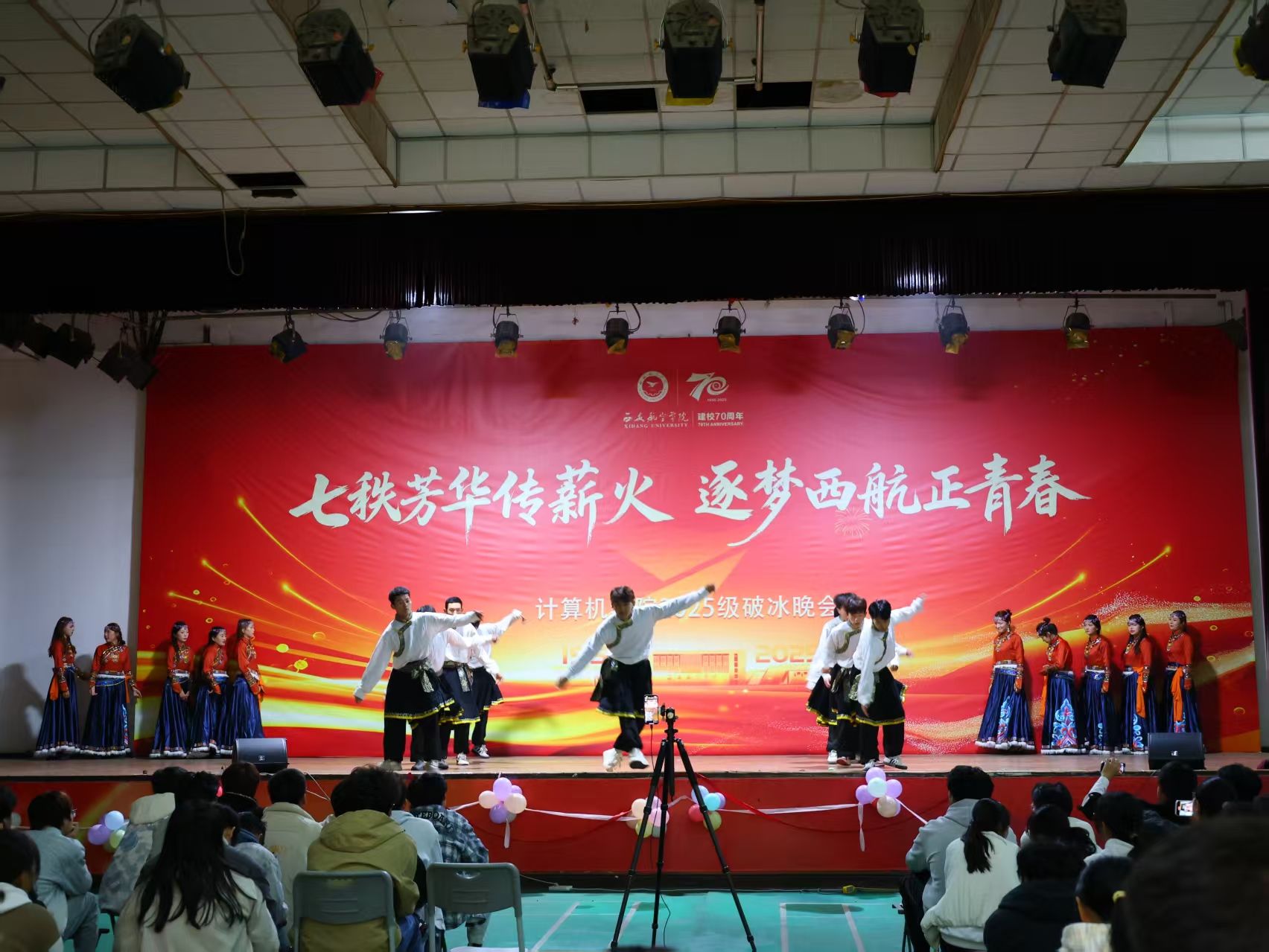 七秩芳华传薪火,逐梦西航正青春。10月28日晚,计算机学院2025级新生破冰晚会在莲湖校区顺利举行。学院领导班子成员、全体辅导员、各学院团总支书记、校友及2025级新生出席晚会。现场300余名师生齐聚一堂,聆听青春之声,共赏视觉盛宴!