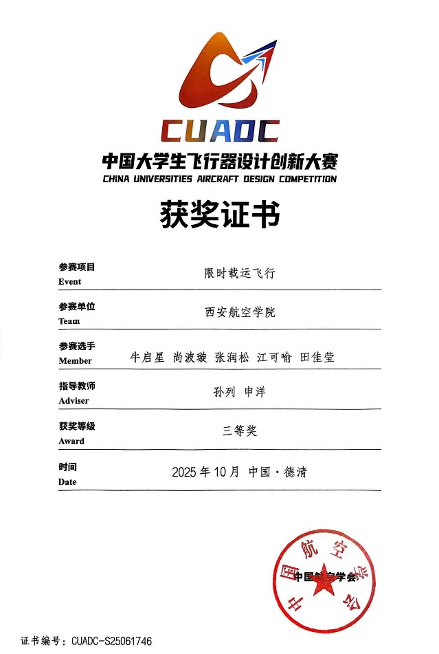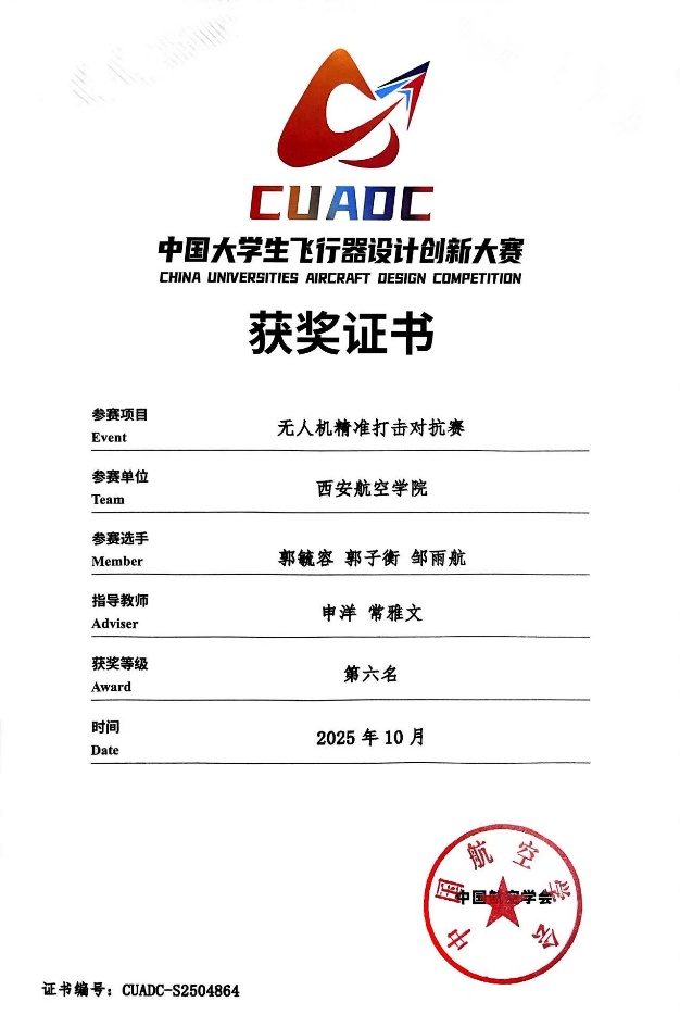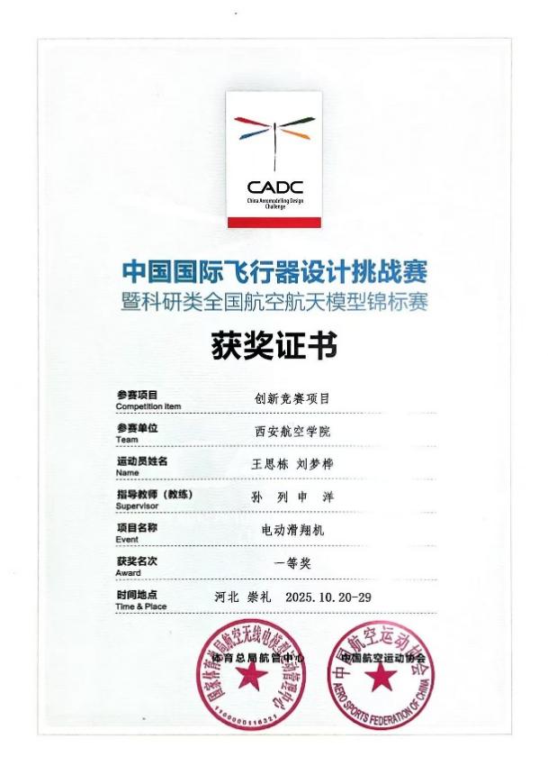 2025年中国国际飞行器设计挑战赛总决赛暨科研类全国航空航天模型锦标赛于10月22日至27日在河北省张家口市举行。赛事由国家体育总局、中国学生体育联合会、中国航空运动协会主办,吸引西北工业大学、哈尔滨工业大学、南京航空航天大学等全国高校1600余名师生参赛。beat365航模队凭借扎实的专业功底与创新实践能力,斩获多个奖项,展现了西航学子在航空航天挑战赛中的实践创新实力。