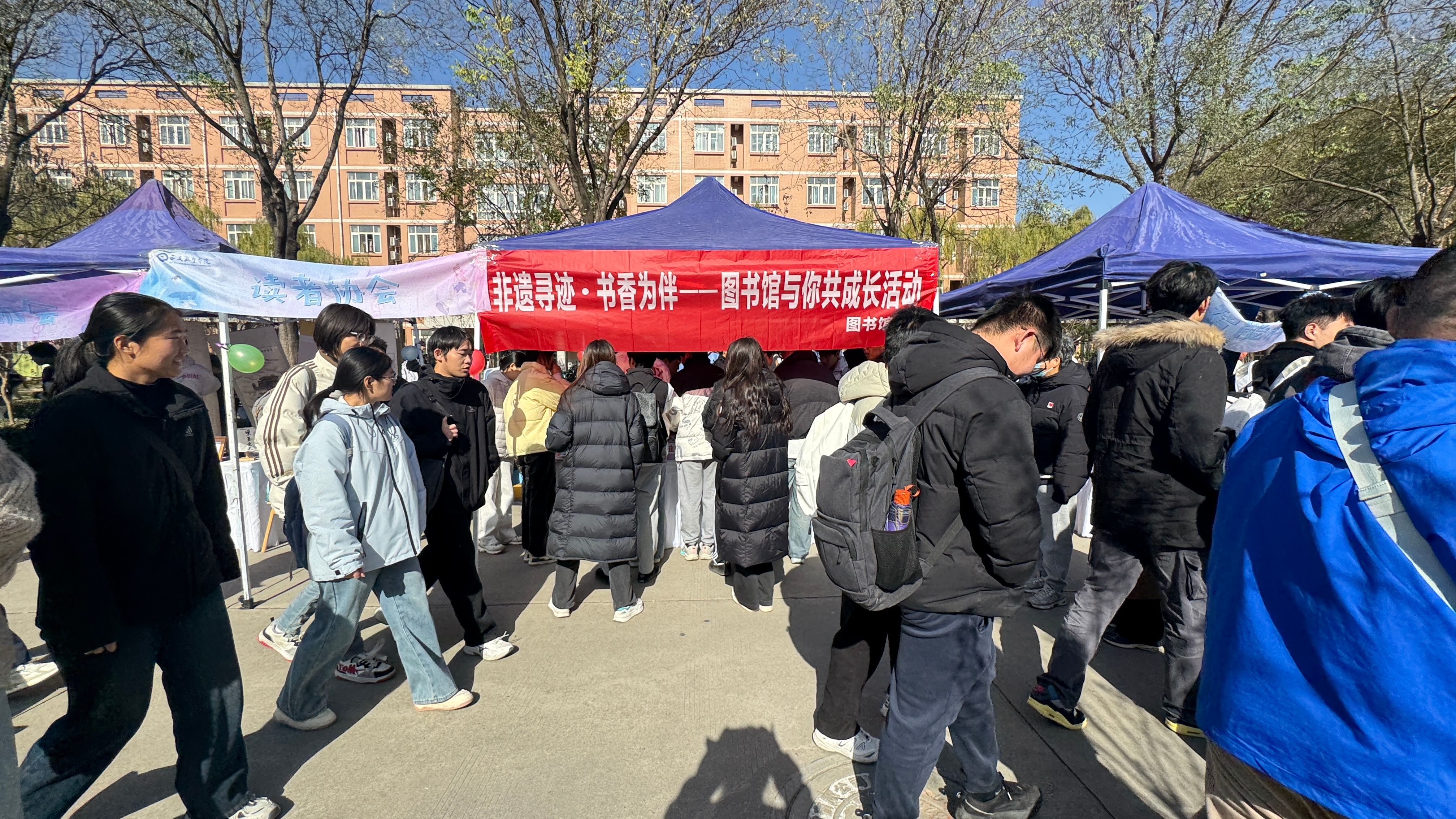 为传承和弘扬中华优秀传统文化,推广图书馆服务资源,11月25日,图书馆在阎良校区举办了“非遗寻迹·书香为伴——图书馆与你共成长”活动,读者协会与书画协会共同承办,吸引众多学生参与。