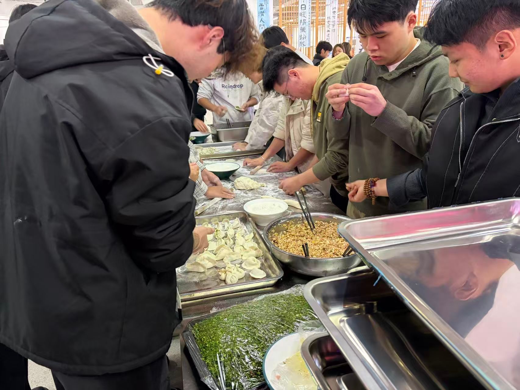 等待饺子煮熟的间隙,现场还开展了冬至文化知识问答等互动环节。大家围坐在一起,分享冬至习俗故事,为刚刚走出考场的考研学生祝福。当热气腾腾的饺子端上桌,师生们品尝着自己亲手包的饺子,鲜香四溢的味道在舌尖弥漫,欢声笑语回荡在食堂的每个角落。