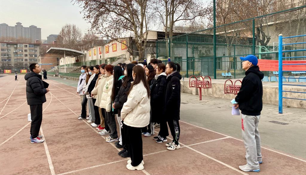 授课教师和学生提前到达运动场,开课后,教师带领学生进行热身运动后开始专项课教学。课上,体育教师认真贯彻新修订教学大纲要求,将本学期课程教学内容、要求、成绩组成及步道乐跑规则等教学内容做了安排。同时对《学生“阳康”后体育锻炼指南》做了解读,并进行了队列队形等恢复性身体素质练习,授课教师精神饱满,教学态度认真,课堂气氛活跃;学生在授课老师的带领下秩序井然,全身心投入体育教学项目训练。