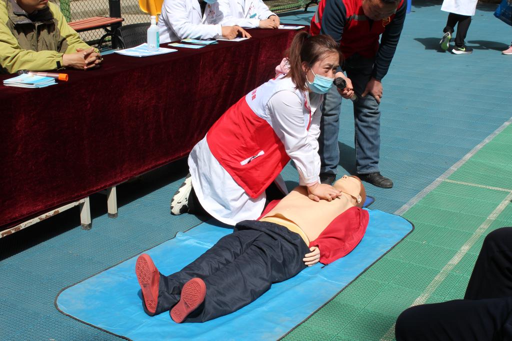 义诊现场,莲湖区桃园路社区卫生服务中心邓军令家庭医师团队为离退休老同志及家属进行了“心肺复苏”急救知识演示、测血压、测血糖、手持式心电图,疾病咨询、常见病的诊疗方案、日常护理建议、健康咨询及查体服务等。