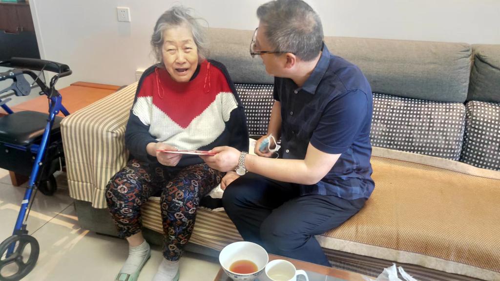 校医院医生孙宝洁细致地为他们听诊、测血压,耐心询问老人身体状况,详细了解四位离休干部的日常身体状况和健康保健需求,给出了有针对性的健康指导和保健建议。孙医生根据血压、心、肺听诊的结果及老人的自我症状、个体化需求,从医疗、护理、用药合理性等方面进行了耐心细致地指导。