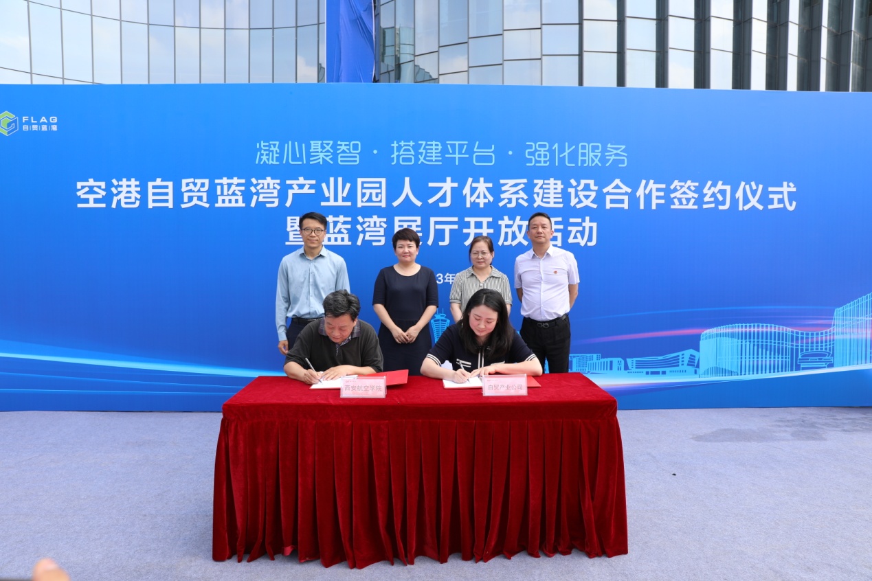 6月29日上午,空港自贸蓝湾产业园人才体系建设合作签约仪式暨蓝湾展厅开放活动在西咸新区空港新城举行。西咸新区社会事业局副局长、党工委人才办专职副主任赵宏庆、西咸人才集团董事长王斐,空港新城组织和人力资源部副部长赵彬、自贸蓝湾产业园管办副主任高亢,城发集团总经理夏梦、副总经理刘季辉,企业代表等出席仪式。电子工程学院院长杨亚萍应邀参加签约仪式。
