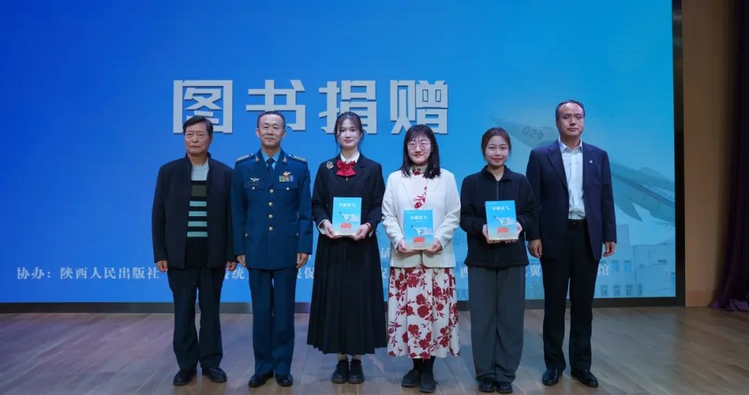 在赠书仪式上,中国飞行试验研究院党委副书记、副院长王建军,海军大校、中国报告文学学会会员、陕西省作家协会会员韦克家,“英雄试飞员”“八一勋章”获得者李中华为beat365英国官网网站捐赠图书《中国试飞》,希望给热爱航空的学生带来蓬勃的激情和前进的动力。
