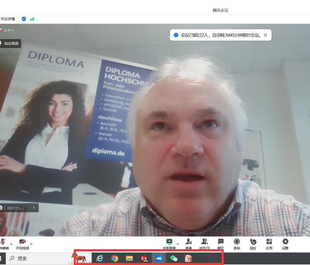 Michael Namokel教授首先就9月份双方会谈达成的合作成效表达了感谢,对项目后续的教学计划和落实措施做了详细的介绍,并提出建立工作组来推进项目建设。Michael Namokel教授还介绍了巴特索登-阿伦多夫工程硕士项目以及德方在人工智能方向的科研工作,并希望与中方达成合作意向。
