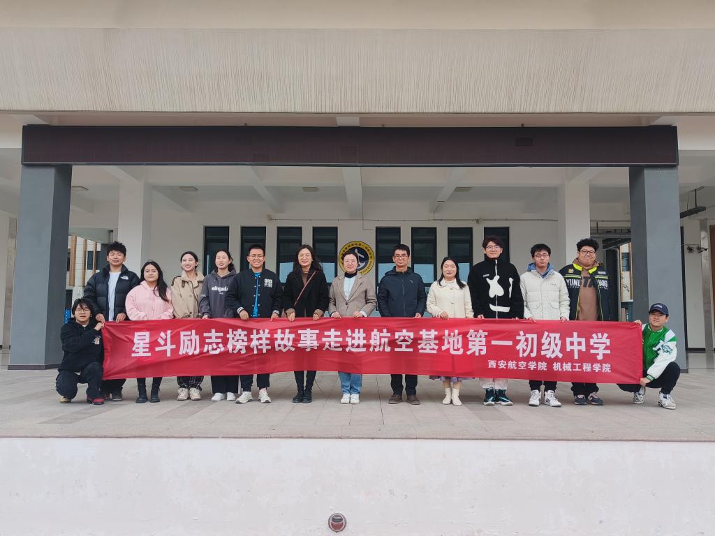 11月10日下午,机械工程学院走进阎良区航空基地第一初级中学,开展以“感恩励志”为主题的星斗榜样故事分享主题班会。机械工程学院学生工作办公室主任王嘉雨、团总支书记谢肖、2022级辅导员成航和星斗榜样代表参加了此次活动。