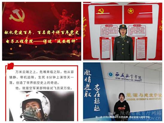——百场团日活动,传承红色“精神谱”。为激发青年学生学习党史的热情,该院团委组织各级团支部根据不同年级、专业、学生意愿开展主题团日活动,通过红色精神学习、重温红色经典、寻访红色圣地等,让学生了解百年党的光辉成就;开展“家长师生共绣党旗”“以赤诚传承航空报国精神”“致敬中国航天梦”等主题活动,引导学生传承红色基因;举办“诚信考试”“保密有我”“校园贷,青春债”“热爱军队,心系国防”及帮扶困境儿童家庭等团日活动,让党史学习教育从“书面”走向“实践”,让党史学习教育深入人心。
