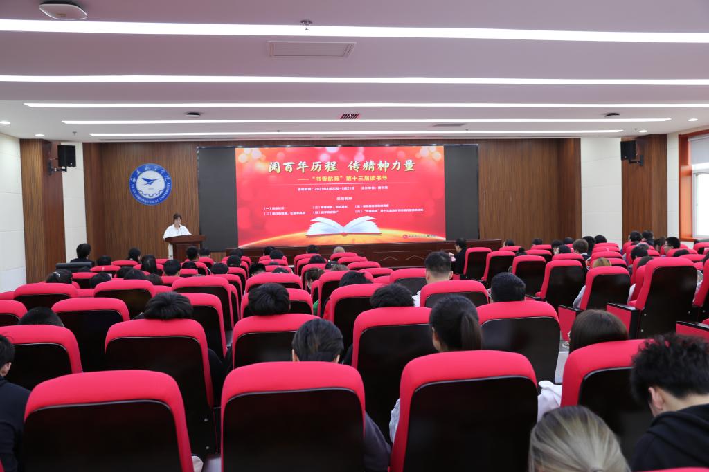 该校图书馆馆长郑东红主持启动仪式并致开幕辞。她表示,今年两会召开,“全民阅读”第八次被写入政府工作报告,《中华人民共和国国民经济和社会发展第十四个五年规划和2035年远景目标纲要》在“提升公共文化服务水平”一章中专门提出“深入推进全民阅读,建设‘书香中国’”。中宣部近日也印发《关于做好2021年全民阅读工作的通知》,对2021年全民阅读工作作出了全面部署。图书馆积极响应中国图书馆学会号召,以“阅百年历程,传精神力量”主题,结合党史学习教育,组织开展 “书香航苑”第十三届读书节系列活动,希望广大师生积极参与,学史明理、学史增信、学史崇德、学史力行。