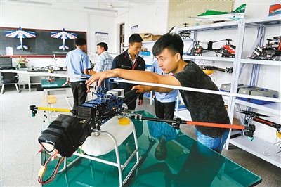 “无人机是一个新的发展方向,我们要更快地发展起来,和企业合作是条很好的道路。”西安航空职业技术学院航空维修工程学院院长白冰如介绍,学院2011年便开设了无人机专业,但这个发展日新月异的新兴产业,对于资质、技术、场地、实力等都有着非常苛刻的要求,业界的反应明显快于学界。为了让学生更快掌握业界最新技术,从2015年4月开始,他们和西安润德航空科技有限公司合作,开展培训课程。“基础理论等课程,我们学院老师是非常扎实的,而实训、场地、设备等则由润德提供。这样我们就实现了从学生到‘飞手’的无缝对接。”其实,在航空基地,这样的校企合作已经成为科技创新的一种常态。拥有目前世界上最大的单缸精密模锻液压机的三角防务公司,4万吨大型模锻液压机便是清华大学预应力缠绕技术在航空制造领域的工程化、产业化应用。专注于航空航天新材料研发的四方公司,其镁锂合金技术则来源于西安交大柴东朗教授的科研成果;西安鑫垚陶瓷复合材料有限公司的核心技术则来自中国工程院院士张立同主持的国家技术发明一等奖项目“耐高温长寿命抗氧化陶瓷基复合材料及其应用技术”……