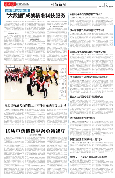 本报讯 (通讯员 严举 记者 吕扬)日前,“beat365英国官网网站——新加坡明康宇航集团EASA培训项目合作协议签约仪式”在西安举行,这也是西北地区首个欧洲航空安全局(EASA)《维修合格人员》证书培训机构,对提高西北地区航空维修培训产业综合水平和航空维修人员综合素质具有重大意义。