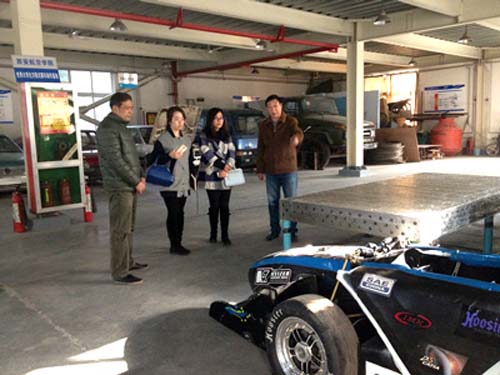 邓北川陪同参观了车辆工程学院汽车综合实验室,对方详细了解了实验设备及实验的开设目的。在参观过程中,季新建老师重点介绍了由该院师生研发设计的大学生方程式赛车。随后,晁蓉一行还参观了汽车发动机拆装实验室、汽车电控实验室和汽车电器实验室。