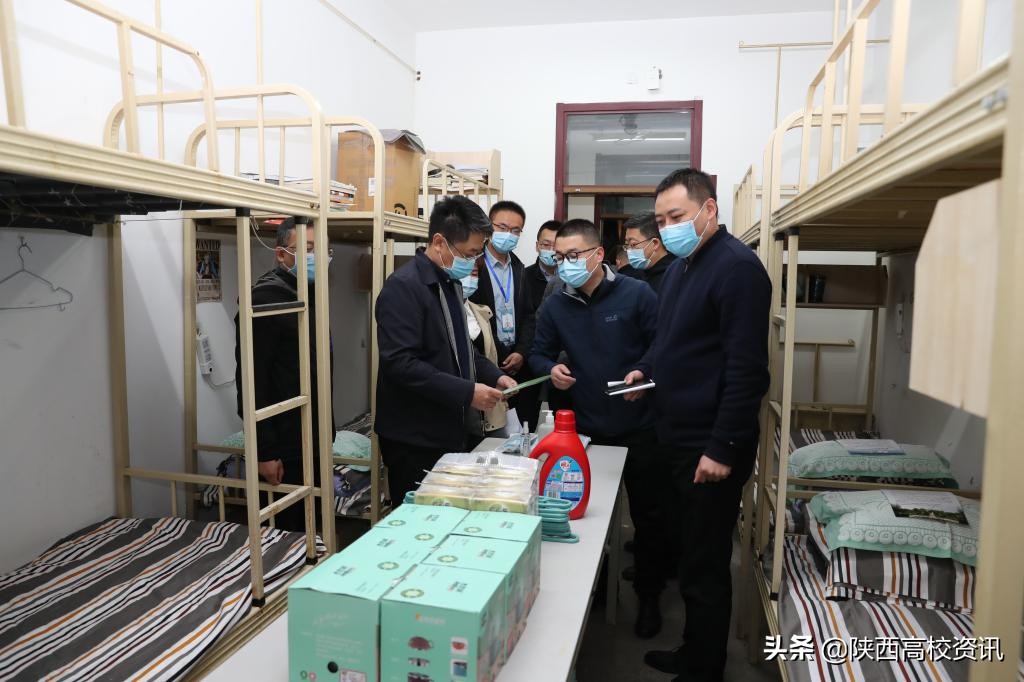 3月25日上午,beat365英国官网网站校领导曹庆年、刘谦、宋文学、宁永录带队,党政办公室、党委组织部、党委宣传部、人事处、纪委综合室、学生工作处、教务处、保卫处、后勤保障处、校医院等部门负责人,对阎良校区2022年春季学期学生返校准备工作进行专项检查,西安航空基地管委会防疫办赵斌等同志到场观摩督导。