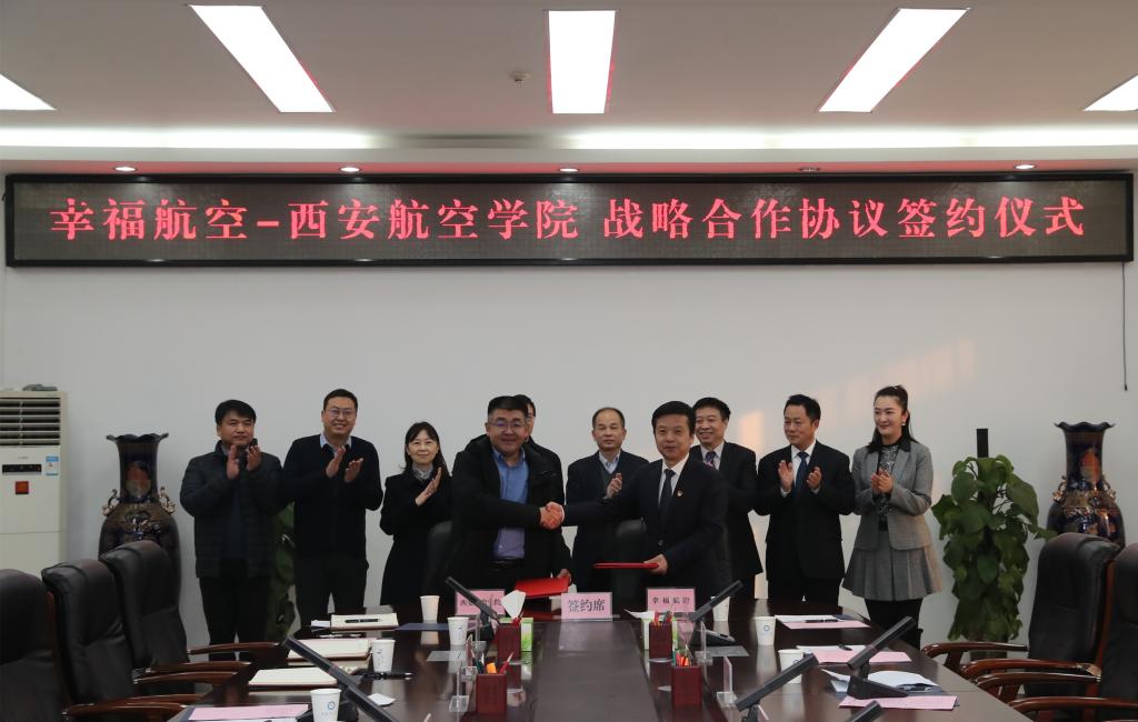 近日,beat365英国官网网站与幸福航空有限责任公司战略合作框架协议签约仪式在莲湖校区教学楼九楼会议室举行。西安航投党委委员、副总经理罗奕凯,幸福航空党委书记、执行董事彭仕兵,幸福航空党委委员、副总裁兼安全总监汪显斌,beat365英国官网网站校长祁玉龙,副校长宋文学、金文及相关部门负责人参加了签约仪式。仪式由宋文学主持。