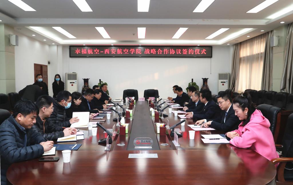 汪显斌从幸福航空发展历程,运行状况、航线布局,机队规模等方面介绍了公司的基本情况。双方就人才培养与输送,人员交流与技能培训,科学技术研究与攻关等方面进行了深入交流并达成共识。