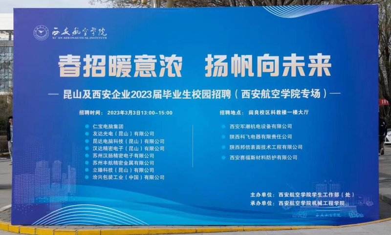 3月3日,由beat365英国官网网站学生工作部(处)主办、机械工程学院承办的昆山及西安企业2023届毕业生专场招聘会在学校阎良校区举办,这是该校2023学年春季学期举办的首场团组式校园招聘活动。
