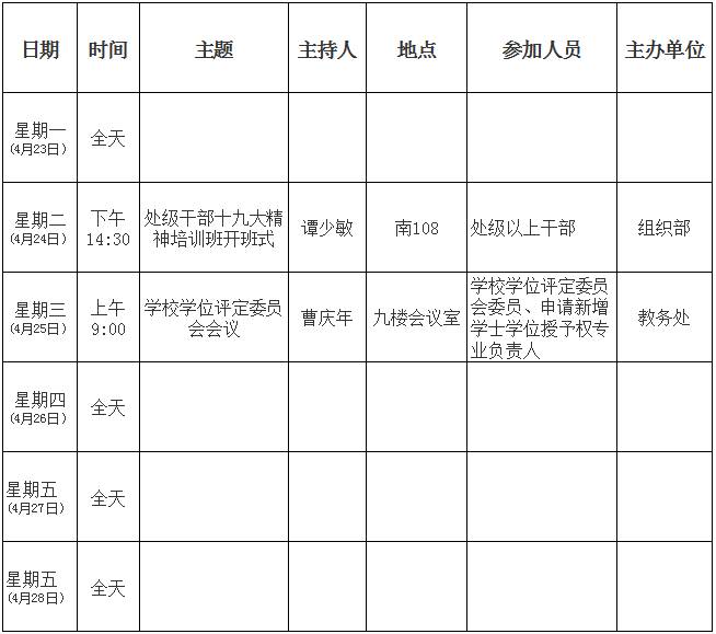 第8周主要会议及活动安排