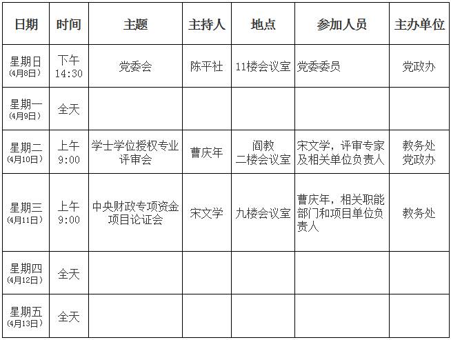 第6周主要会议及活动安排