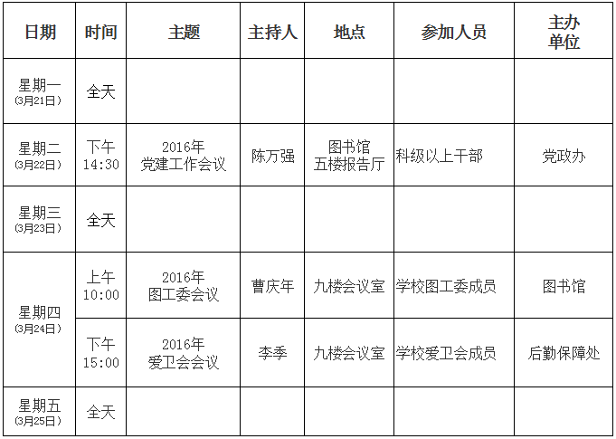 beat365英国官网网站2015/2016学年第二学期第4周主要会议活动安排表
