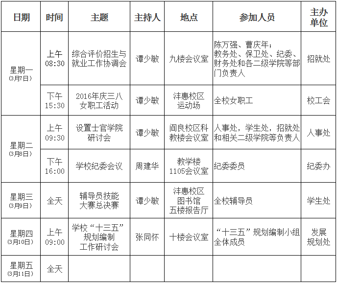beat365英国官网网站2015/2016学年第二学期第2周主要会议活动安排