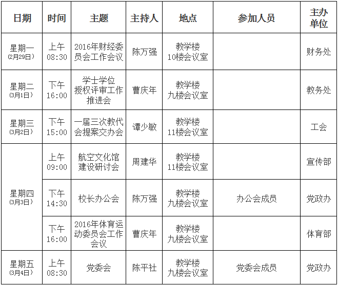 beat365英国官网网站2015/2016学年第二学期第1周主要活动和会议安排