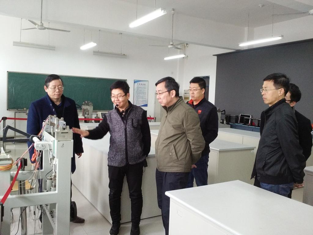 张广良随后向校领导汇报了中国航空综合技术研究所共建“飞机零组件制造工艺技术标验证联合实验室”、广州瑞松北斗汽车装备有限公司机器人应用研发中心项目、陕西杰创科技公司“扭矩检测技术研究中心”的合作进展情况,参观了力学实验中心,数字化设计与制造中心、计算机辅助测量中心、机械制造综合实验室等一年来的建设成果,并到“工匠坊”制作间观摩了学生自主设计、自主试制的作品和指导技师的工作情况。