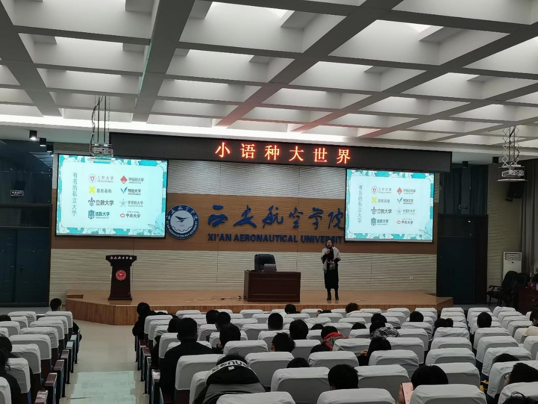 引领学生领悟留学内涵,拓展学涯规划路径。围绕“立足专业,心系全球”活动主题,两校区举办了《云游德国——体验德国文化》、《小语种大世界》、《赴美带薪实习——一个不花钱反而可以挣钱的美国政府发起的安全实习项目》、《日韩俄硕士申请流程解析》等24场主题宣讲会。在一个多月的活动中,1500余名师生积极参加各类讲座和项目宣讲会。通过宣传月讲座和学生面对面交流,同学们对未来的人生规划有了新的思路,对个人升学和外语学习有了新的视角,对完善个人的学习生涯规划有了更明晰的方向。