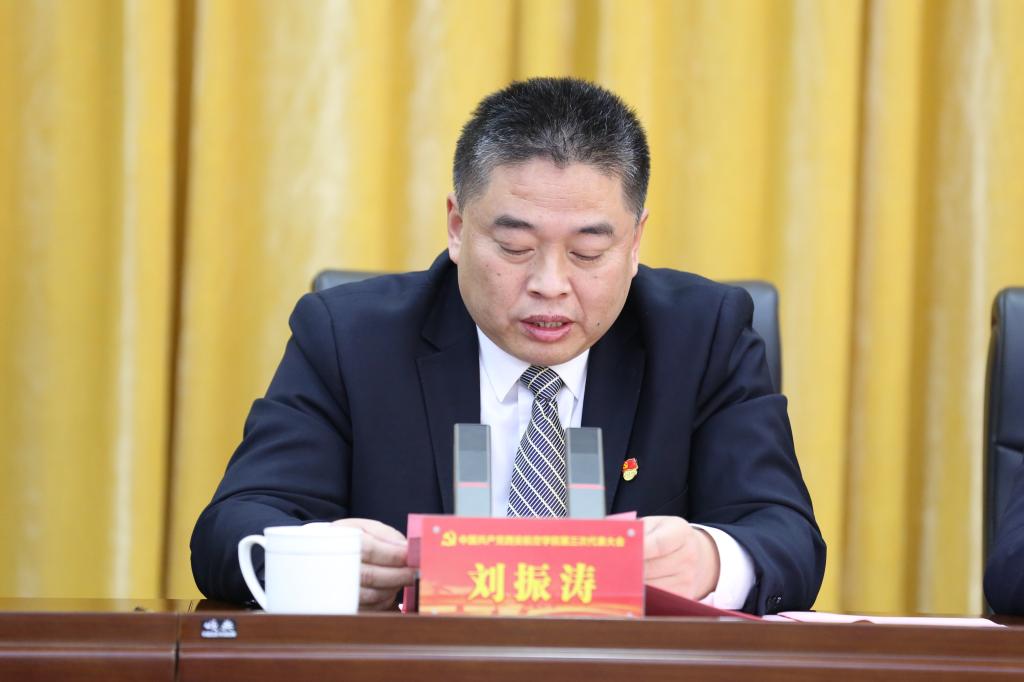 刘振涛致大会闭幕词。他指出,在上级党组织的坚强领导和正确指导下,在各位代表的共同努力下,学校第三次党代会已经圆满完成了预定的各项任务。这是一次统一思想、坚定信心的大会,是一次再鼓干劲、继往开来的大会。向全体与会代表和工作人员,向过去五年来为学校事业发展做出积极贡献的广大师生员工和离退休老同志们表示衷心的感谢!代表新一届“两委”领导班子对各位代表的信任和支持表示诚挚的谢意!