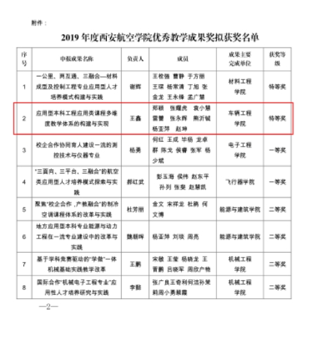 提升教学工作水平。教学工作始终坚持立德树人、以学生为中心的思想,目前学院有省级一流课程3门,汽车构造、汽车保险与理赔和车联网技术,完成2门汽车构造和新能源汽车MOOC建设,建立课程思政建设汽车服务工程专业导论、课程双语建设汽车维修工程和新能源汽车、汽车电器与电控技术等6门混合式课程改革。完成《汽车构造》《专用车辆设计》等7门公开出版教材,完成校内讲义和实验、实习指导书若干。积极参加学校组织的各类教学竞赛,教学竞赛、课堂创新大赛等,教学竞赛获得省赛三等奖2次。近几年,学生在全国各类竞赛中成绩也越来越好。