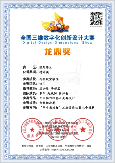全国三位数字化创新设计大赛省级特等奖