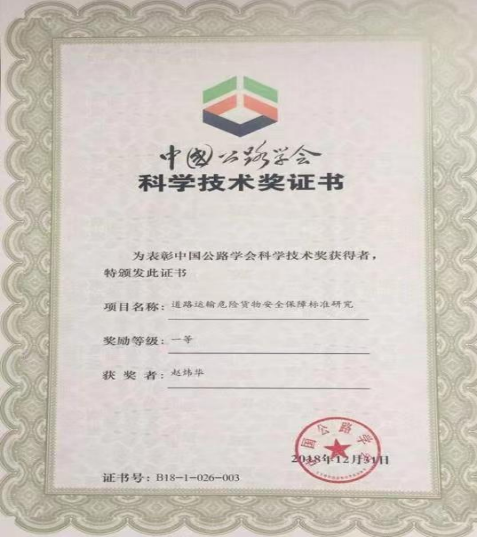 中国公路学会科学技术一等奖